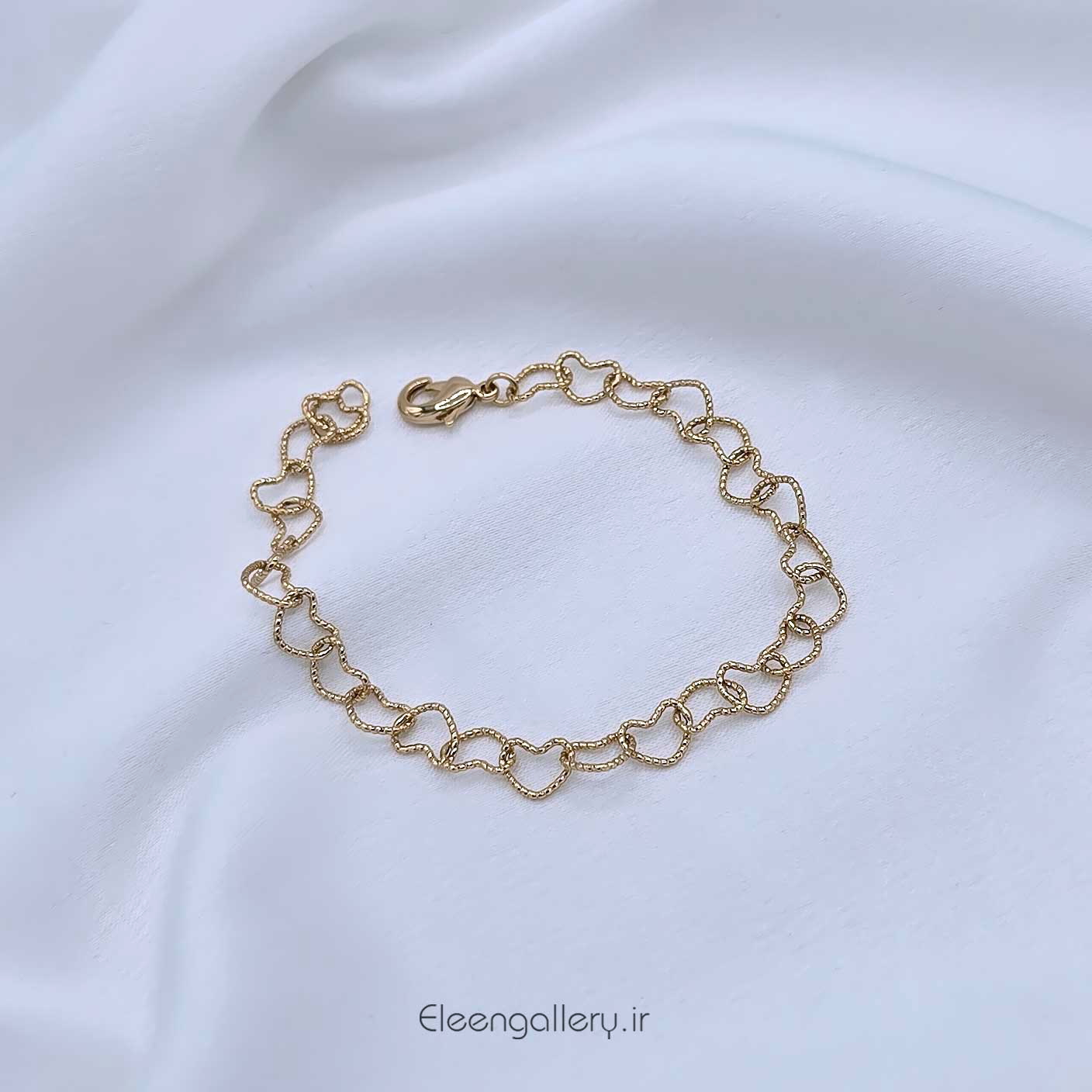 دستبندی زیبا شکل گرفته با زنجیرهای از حلقههای قلبی شکل که با جذابیتی خاص به هم بافته شدهاند. همین حالا این دستبند شیک را به سبد خرید خود اضافه کنید و خاص بدرخشید! ساخته شده از آلیاژ مس با آبکاری طلا، کاملا مشابه طلا، ضدحساسیت، اما با قیمت بسیار مناسب، تا با کمترین هزینه، تنوع را وارد سبک خود کنید و در هر جمعی بیشتر از پیش بدرخشید! فروشگاه بدلیجات زنانه و دخترانه الین گالری، همراه همیشگی شما در انتخاب یک استایل خاص و شیک! طول دستبند ۱۸ و قطر حدودی ۶ میلیمتر. (برای اطلاع از نحوه نگهداری و ثبات رنگ محصول، صفحه راهنمای نگهداری بدلیجات را مطالعه فرمایید).