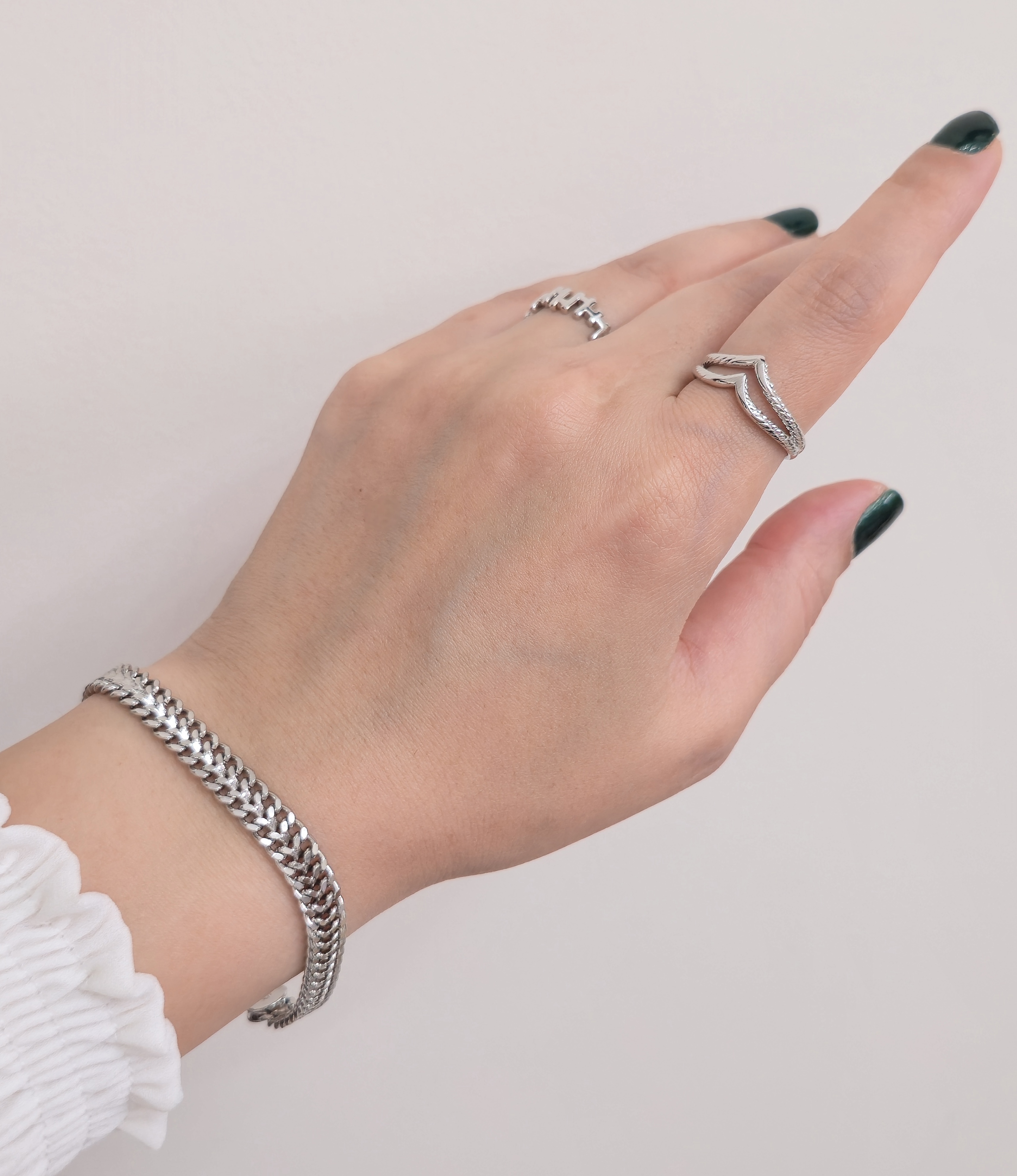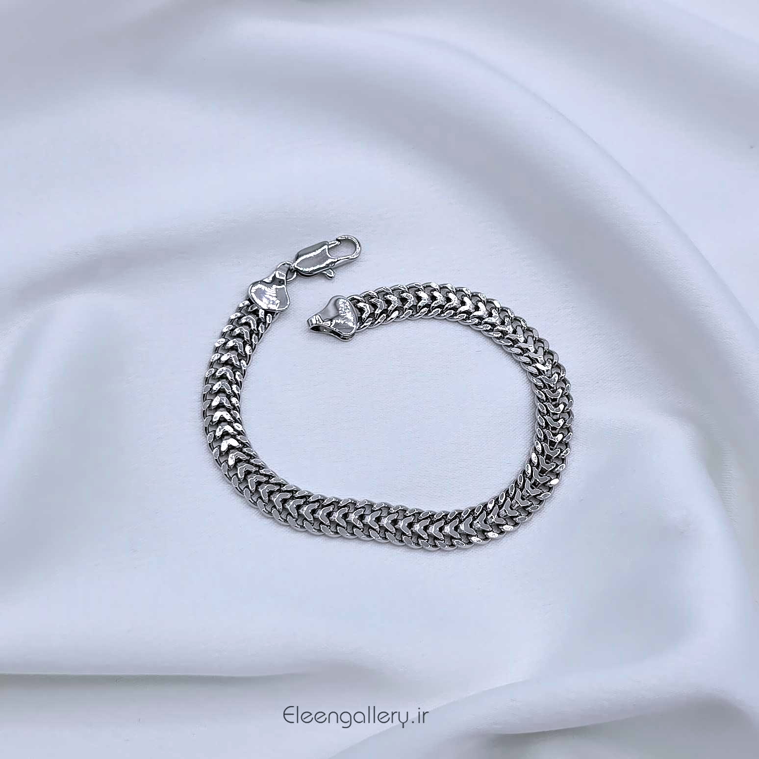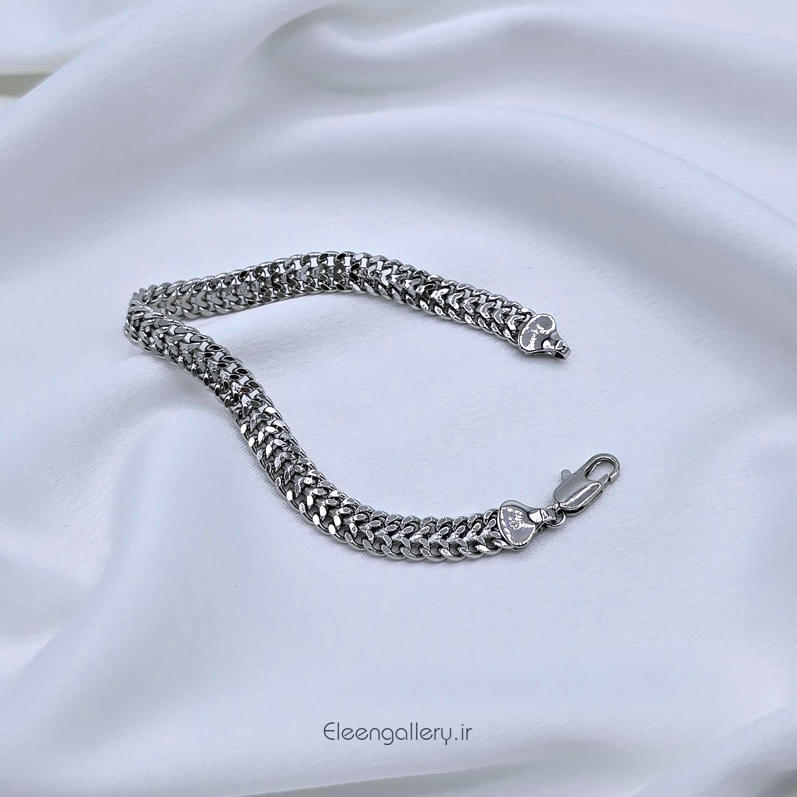 دستبند دخترانه ژوپینگ با بافت خاص و شیک برنگ سیلور، کاری شکیل و زیبا برای استایل جذاب شما! همین حالا این دستبند را به سبد خرید خود اضافه کنید. ساخته شده از آلیاژ مس با آبکاری رودیوم، ضدحساسیت، با قیمت بسیار مناسب تا با کمترین هزینه در هر جمع و مهمانی بیشتر از پیش بدرخشید و خاص بمانید. فروشگاه بدلیجات زنانه و دخترانه الین گالری همراه همیشگی شما در انتخاب یک استایل ناب و خاص! سایز دستبند: طول ۱۹ و قطر ۷ میلیمتر. (برای اطلاع از نحوه نگهداری و ثبات رنگ محصول، صفحه راهنمای نگهداری بدلیجات را مطالعه فرمایید).